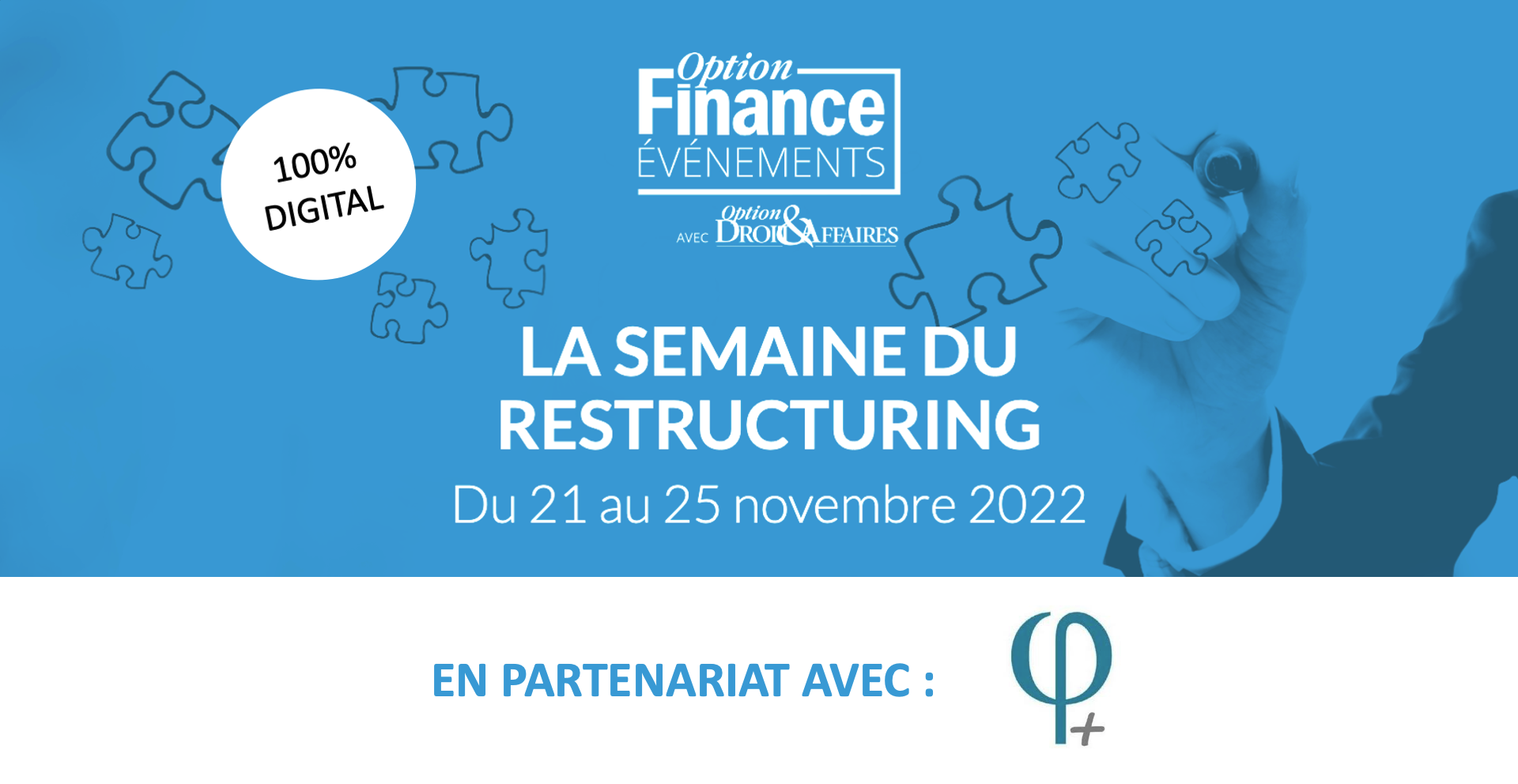 | FI PLUS, en partenariat avec Option Finance et Option Droit & Affaires, a le plaisir de vous inviter du 21 au 25 novembre 2022 à profiter d’une semaine de conférences 100% digitales autour du Restructuring. L’objectif de cet événement est d’analyser les conséquences économiques de la guerre en Ukraine. Les acteurs du restructuring et du financement feront le point sur la situation économique très tendue et sur les risques de défaillances d’entreprises ; ils vous présenteront leurs visions ainsi que les solutions qu’ils fournissent aux entreprises en difficulté. Pour découvrir le programme et bénéficier de l’expertise réunie, inscrivez-vous dès à présent sur le site de l’évènement. |