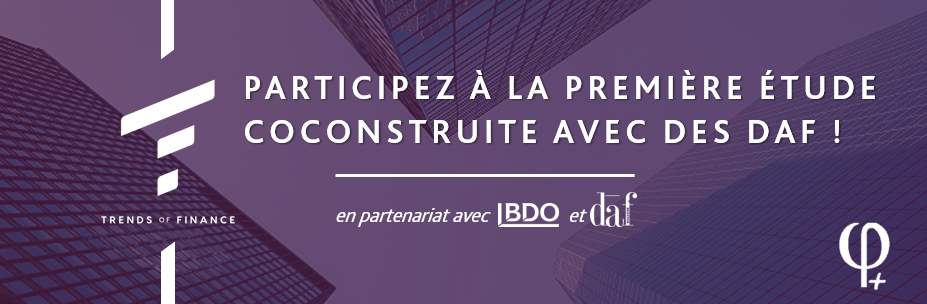 | Fi plus en partenariat avec BDO et DAF MAG lancent la première étude coconstruite par vos pairs : DAF d’ETI / Grands Groupes en France. Nous sommes ravis de vous annoncer le lancement de l’étude Trends of Finance. Sa particularité ? Elle est basée sur un sondage créé par des DAF pour des DAF ! Après un mois de travail avec 30 DAF d’ETI/Grands Comptes pour élaborer ce sondage, nous sommes ravis de vous proposer d’y participer : Je participe à l’étude Pourquoi avoir réuni 30 DAF d’ETI/Grands Comptes pour élaborer ce sondage ? Pour être au plus proche de votre réalité et vous permettre de vous comparer. Vous découvrirez également de bonnes pratiques qui vous permettront de prendre du recul et d’optimiser votre propre fonction financière. |