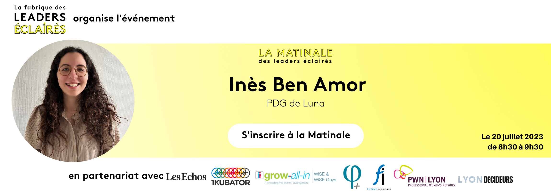 Le jeudi 20 juillet 2023 de 8h30 à 9h30 retrouvez lors d’un live interactif : Inès Ben Amor – CEO de Luna : « Quel leadership pour mettre l’IA au service de l’humain ?”